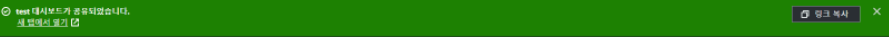 - 생성한 대시보드를 외부에서 참조할 수 있는 기능으로, public url을 통해 누구나 접근할 수 있음.