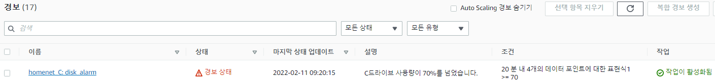 | AWS Cloudwatch 알람 설정 (0) | 2022.03.08 |